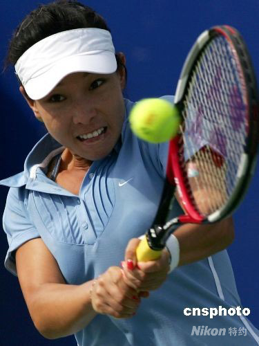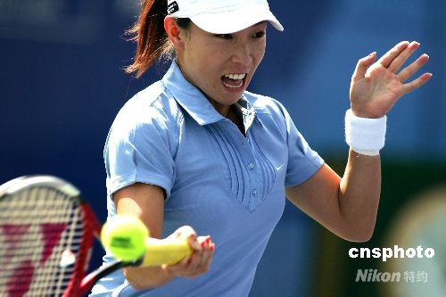 9月25日,2008年中國網(wǎng)球公開賽繼續(xù)進(jìn)行,女單賽場碩果僅存的中國金花鄭潔僅用時69分鐘就以6-1,6-2橫掃日本老將杉山愛,昂首挺進(jìn)女單8強(qiáng)。鄭潔很可能在4分之1決賽中與2號種子塞爾維亞美少女伊萬諾維奇狹路相逢。中新社發(fā) 富田 攝