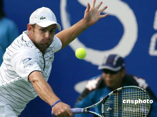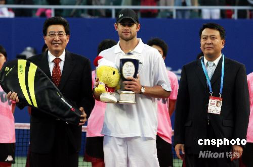 9月28日,在2008年中國網(wǎng)球公開賽男單冠亞軍爭奪戰(zhàn)中,美國帥哥羅迪克以6-4/6-7(5)/6-3艱難擊敗本周持續(xù)有出色表現(xiàn)的以色列黑馬D·塞拉,奪得冠軍。這也是他本賽季繼2月圣何塞以及3月迪拜之后第三次奪得巡回賽單打冠軍,同時(shí)亦是個(gè)人職業(yè)生涯的第26個(gè)單打冠軍。 中新社發(fā) 富田 攝