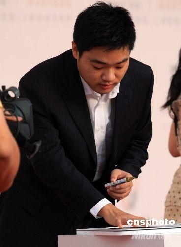 9月28日,2008年斯諾克上海大師賽揭幕,中國(guó)斯諾克領(lǐng)軍人物之一的丁俊暉低調(diào)面對(duì)賽事,沉穩(wěn)地留下“明星手印”。將于29日開打的本次大賽,共云集世界排名前16的斯諾克高手、16位資格賽選手,以及7位中國(guó)外卡選手同場(chǎng)競(jìng)技。中新社發(fā) 潘索菲 攝