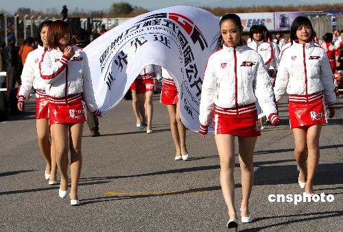 AGF亞洲方程式國(guó)際公開賽10月26日在北京京港賽車場(chǎng)舉行,來(lái)自中國(guó)內(nèi)地和香港的20名頂級(jí)方程式車手參加本站精彩紛呈的較量,眾多美女前來(lái)助陣。中新社發(fā) 趙振清 攝
