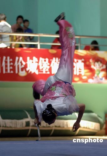 10月28日,武術(shù)女子選手進(jìn)行劍術(shù)比賽。第六屆全國(guó)農(nóng)民運(yùn)動(dòng)會(huì)武術(shù)比賽在福建省泉州市體育中心吳家熊?chē)?guó)術(shù)館進(jìn)行,武林高手匯集于此,展示高超的國(guó)術(shù)技藝。中新社發(fā) 王東明 攝