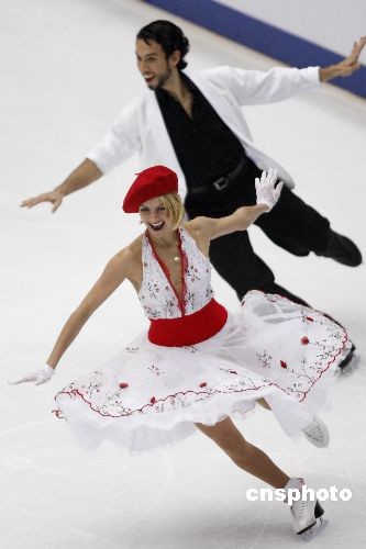 11月7日,2008中國(guó)杯世界花樣滑冰大獎(jiǎng)賽在北京首都體育館進(jìn)行第二天的爭(zhēng)奪,美國(guó)組合貝爾賓、阿岡斯托在冰舞創(chuàng)編舞比賽中獲第一名,并以95.23分的總成績(jī)位列十對(duì)參賽選手的第二名,俄羅斯組合多姆尼娜、沙巴林以95.58的成績(jī)排在參賽的十對(duì)選手之首。中新社發(fā) 盛佳鵬 攝