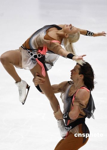 11月8日,2008中國杯世界花樣滑冰大獎賽繼續(xù)在北京首都體育館舉行。在結(jié)束的冰舞比賽中,俄羅斯選手多姆尼娜/沙巴林奪得冠軍。中新社發(fā) 盛佳鵬 攝