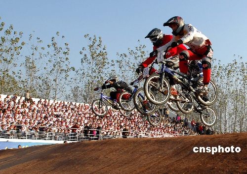 2008年11月10日,由國家體育總局自行車擊劍運動管理中心主辦、江蘇省宿遷市人民政府承辦的“洋河藍(lán)色經(jīng)典”全國自行車BMX(即小輪車)冠軍賽在宿遷開賽。來自全國16個省市小輪車專業(yè)隊、俱樂部,代表著我國BMX競速最高水平的100余名運動員,參加了成年男子、成年女子、青年女子組的比賽。2008年全國BMX小輪車冠軍賽共分五站進行,11月10日~12日的第一站、第二站比賽在江蘇宿遷舉行。中新社發(fā) 柏志勇 攝