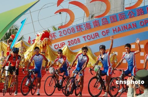 11月11日,“紅塔杯”2008環(huán)海南島國際公路自行車賽在三亞鳴槍開賽。在首日3.1公里的序幕賽中,來自哈薩克斯坦國家隊的156號選手德米特里·格魯扎得夫奪得冠軍,他同時還獲得了“亞洲最佳”和個人總成績第一名;來自俄羅斯國家隊的112號選手伯瑞斯·斯皮爾斯基獲得序幕賽第二名;來自美國吉利百利洲際隊的63號選手查爾斯·胡弗獲得序幕賽第三名。中新社發(fā) 尹海明 攝