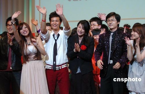 郭晶晶(右三)和歌手阿蘭(左二)與兩國青年共同高歌《明天會(huì)更好》。