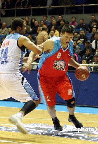 11月16日晚,新賽季CBA聯(lián)賽進(jìn)行首輪爭(zhēng)奪,北京金隅坐鎮(zhèn)首鋼籃球中心對(duì)陣新疆廣匯,整場(chǎng)比賽爭(zhēng)奪激烈,比分交替領(lǐng)先,第四節(jié)結(jié)束前北京金隅領(lǐng)先三分,新疆隊(duì)?wèi){借外援邁龍.艾倫的一個(gè)壓哨三分球追平比分進(jìn)入加時(shí),北京金隅氣勢(shì)大受打擊,最終以97:101輸?shù)羰讉(gè)主場(chǎng)比賽。新疆隊(duì)雙外援胡安和艾倫發(fā)揮超常,兩人總共得到81分。中新社發(fā) 王韶驊 攝