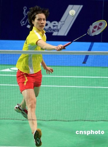 11月19日,在上海舉行的2008年中國(guó)羽毛球公開(kāi)賽展開(kāi)正賽首輪爭(zhēng)奪,中國(guó)名將謝杏芳以2比0輕取日本選手后藤愛(ài),順利晉級(jí)。中新社發(fā) 湯彥俊 攝