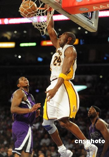 當(dāng)?shù)貢r(shí)間十一月二十三日晚,NBA洛杉磯湖人隊(duì)在主場(chǎng)迎戰(zhàn)薩克拉門托國(guó)王隊(duì)。最終湖人隊(duì)以一百一十八比一百零八擊敗國(guó)王隊(duì),迎來(lái)四連勝,國(guó)王遭遇兩連敗。科比此役得到二十四分和六次助攻。中新社發(fā) 張煒 攝
