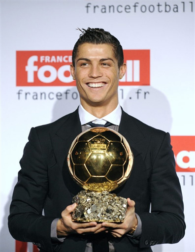 7日,2008年歐洲金球獎(jiǎng)得主C羅飛抵巴黎,正式從金球獎(jiǎng)評(píng)委會(huì)主席肖米埃手中接過(guò)屬于自己的金球獎(jiǎng)獎(jiǎng)杯。C羅的母親與曼聯(lián)主教練福格森都來(lái)到了現(xiàn)場(chǎng),親眼見(jiàn)證這位葡萄牙球星的登基時(shí)刻。
