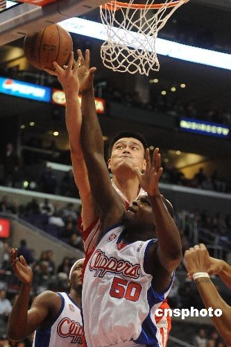 圖為姚明爭(zhēng)籃板。