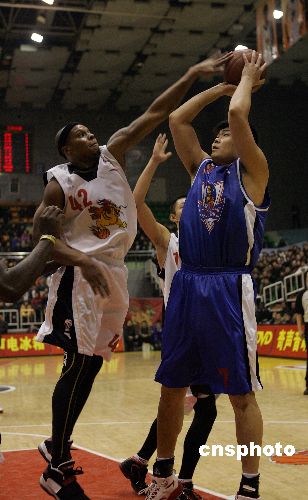 1月9日晚,CBA聯(lián)賽第二十四輪打響。山西中宇依托全隊(duì)內(nèi)外開火以106:88輕松擊敗客場(chǎng)作戰(zhàn)的天津榮鋼。中新社發(fā) 張?jiān)?攝