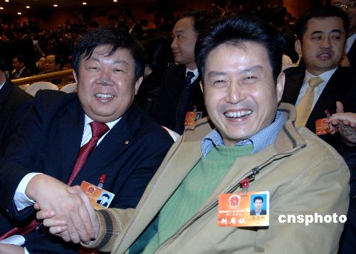 一月十日,全國(guó)人大代表、中國(guó)女排主教練陳忠和(右一)列席福建省第十一屆人民代表大會(huì)第二次會(huì)議。當(dāng)日,福建省第十一屆人民代表大會(huì)第二次會(huì)議在福州開(kāi)幕。中新社發(fā) 劉可耕 攝