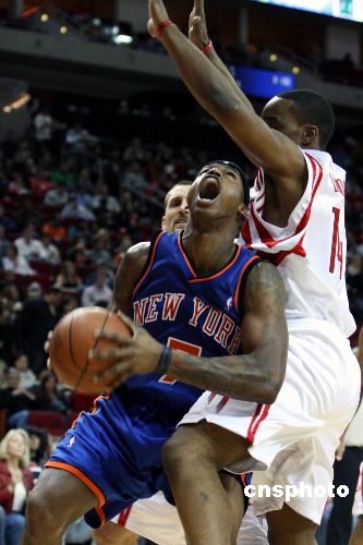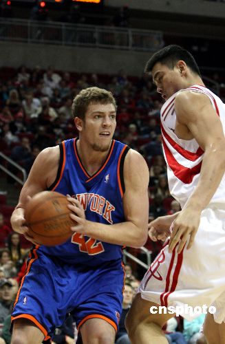 當(dāng)?shù)貢r(shí)間1月10日晚,主場(chǎng)作戰(zhàn)的火箭隊(duì)以96比76大勝紐約尼克斯隊(duì)。斯科拉和姚明今天聯(lián)手內(nèi)線有不錯(cuò)發(fā)揮,火箭全隊(duì)多點(diǎn)開(kāi)花,第三節(jié)火箭隊(duì)打出進(jìn)攻高潮,最終擊敗尼克斯,取得三連勝。中新社發(fā) 歐文 攝