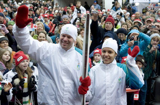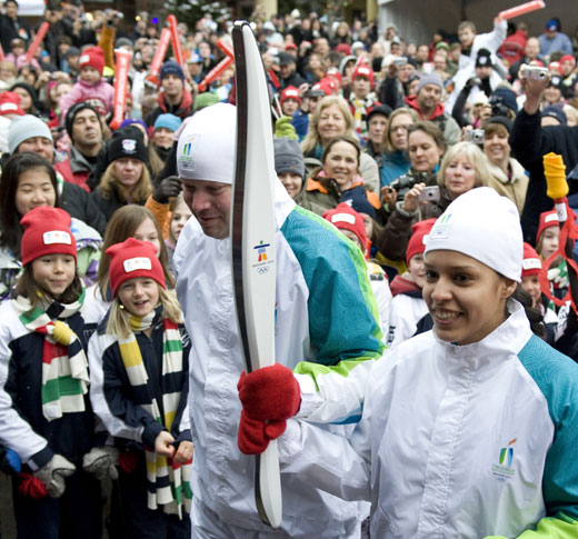 2月12日,加拿大溫哥華2010年冬奧會組委會在加西滑雪勝地惠斯勒正式公布了冬奧會火炬和火炬手服裝,從而拉開了冬奧會倒計時一周年慶;顒拥男蚰弧