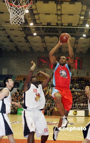 2月18日晚,CBA聯(lián)賽三十七輪打響,坐鎮(zhèn)主場(chǎng)的山西中宇迎戰(zhàn)CBA聯(lián)賽北區(qū)頭名新疆廣匯,由于實(shí)力的差距,山西中宇雖然奮力苦戰(zhàn)但是不敵擁有眾多出色球員的新疆廣匯,最終以83:111輸?shù)舯緢?chǎng)比賽。 中新社發(fā) 張?jiān)?攝