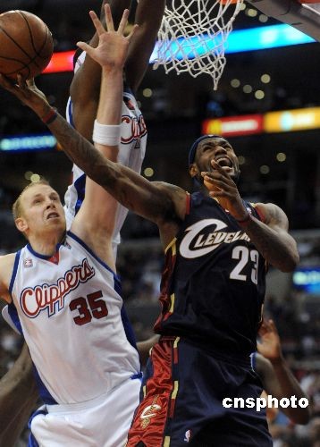 當(dāng)?shù)貢r(shí)間三月十日晚,NBA東部賽區(qū)暫列第一的克利夫蘭騎士隊(duì)在客場上演大逆轉(zhuǎn),在落后十九分的情況下,最終以八十七比八十三戰(zhàn)勝洛杉磯快船隊(duì)。騎士隊(duì)球星勒布朗·詹姆斯打出“三雙”,貢獻(xiàn)三十二分、十三個(gè)籃板和十一次助攻。中新社發(fā) 張煒 攝