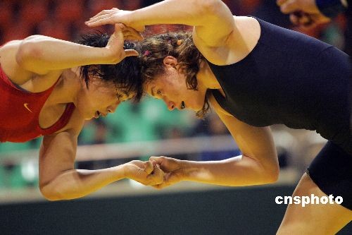 3月21日上午,由國際摔跤聯(lián)合會主辦,中國摔跤協(xié)會、太原市政府、山西省體育局承辦的“2009年女子摔跤世界杯比賽”將于今日在太原拉開戰(zhàn)幕。在進(jìn)行的小組賽第一輪中,奧運(yùn)冠軍王嬌領(lǐng)銜的中國隊以總比分5:2戰(zhàn)勝日本隊,贏得開門紅。中新社發(fā) 張云 攝