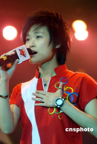 10月24日晚,海南“2008北京奧運會火炬手頒獎禮”在?谂e行。李平、譚麗林、凌萍、韓燕等10人當選為可口可樂2008奧運火炬手。據悉,經北京奧組委審核后,這10名火炬手將正式成為北京奧運會火炬手。超女冠軍李宇春現身現場演唱助興。據悉,海南是2008北京奧運火炬?zhèn)鬟f首傳省。中新社發(fā) 善平 攝