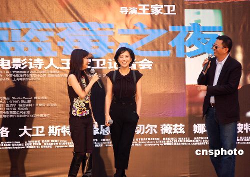 10月25日,第十六屆中國(guó)金雞白花電影節(jié)系列活動(dòng)之“藍(lán)莓之夜——電影詩(shī)人王家衛(wèi)導(dǎo)演記者會(huì)”在美麗的金雞湖畔舉行。香港著名導(dǎo)演、編劇及監(jiān)制王家衛(wèi)攜首部外語(yǔ)片《藍(lán)莓之夜》蒞臨現(xiàn)場(chǎng),作為第十六屆金雞百花電影節(jié)娛樂(lè)形象大使的劉嘉玲也來(lái)為王家衛(wèi)導(dǎo)演助陣,為本屆電影節(jié)增添璀璨星光。中新社發(fā) 邱勇 攝