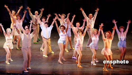 2007年11月23日晚,來(lái)自美國(guó)百老匯的音樂(lè)劇《42街》在西安人民大廈劇場(chǎng)隆重上演。激情的踢踏舞、絢麗的舞臺(tái)、美妙的歌聲,為西安觀眾帶來(lái)了一場(chǎng)視聽(tīng)震撼。中新社發(fā) 李海軍 攝