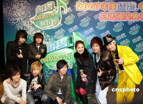 十二月四日,人氣女王楊千嬅、人氣小天王胡彥斌,以及王嘯坤、薛之謙、俞思遠(yuǎn)、海明威等眾明星在上海,啟動(dòng)2007年度“雪碧”中國(guó)原創(chuàng)音樂(lè)流行榜拉票活動(dòng)。據(jù)介紹,歷時(shí)七年的雪碧音樂(lè)榜,旨在展示“享受音樂(lè),表達(dá)自我”的音樂(lè)理念。中新社發(fā) 潘索菲 攝
