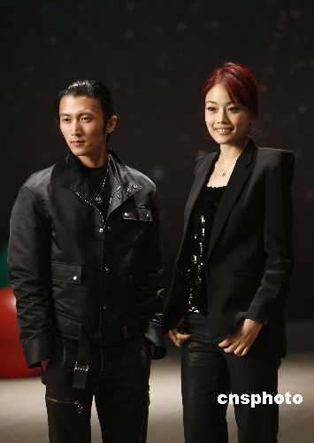 十二月十二日,香港知名歌手謝霆鋒、容祖兒在北京八一電影制片廠攝影棚,攜手為北京奧運(yùn)歌曲《同在藍(lán)色星球上》放歌。目前,《同在藍(lán)色星球上》等十首奧運(yùn)歌曲音樂(lè)電視正在緊張的制作之中,有望在2008年年初與觀眾見(jiàn)面。中新社發(fā) 盛佳鵬 攝