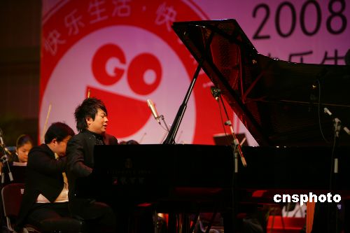 12月28日晚,青年鋼琴演奏家郎朗在長(zhǎng)沙舉行“快樂(lè)生活快樂(lè)購(gòu)·郎朗乾坤2008新年感恩鋼琴音樂(lè)會(huì)”。上半場(chǎng)郎朗和湖南省交響樂(lè)團(tuán)合作表演了《黃河》,下半場(chǎng)獨(dú)奏時(shí)間里,郎朗演奏了莫扎特降B大調(diào)鋼琴奏鳴曲等世界名曲。中新社發(fā) 鄧霞 攝