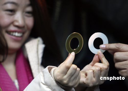 一月二日,北京奧組委和青海省政府正式舉行昆侖玉捐贈儀式。昆侖玉將作為2008北京奧運會獎牌用玉。青海昆侖玉主要成分由“投山石”和“陽起石”組成的纖維狀微晶結合體,有“白玉”、“青玉”、“青白玉”、“黃玉”、“墨玉”等,豐富的色澤便于區(qū)分金、銀、銅獎牌的等級,是國際珠寶界目前認定的優(yōu)質級別寶玉石種類。中新社發(fā) 任海霞 攝