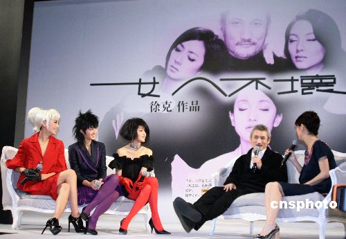 1月8日下午,由徐克指導(dǎo)的最新影片《女人不壞》在北京召開記者會(huì),徐導(dǎo)率三位女主角周迅、桂綸鎂、張雨琦一同出席。三位女主角分別以極為“出位”的造型亮相,徐克稱不僅是從外形上對(duì)她們進(jìn)行“改造”,還要讓這三位從沒演過喜劇角色的演員出演喜劇,挖掘出她們不為人知的一面。據(jù)悉,周迅在戲中要演包括孕婦、醫(yī)生、病人、記者、農(nóng)婦等十二個(gè)角色,桂綸鎂是一個(gè)相當(dāng)野蠻但是介乎于真實(shí)和虛幻里的人物,張雨琦則是綽號(hào)“無敵”的以智慧掛帥的女性。中新社發(fā) 一可 攝