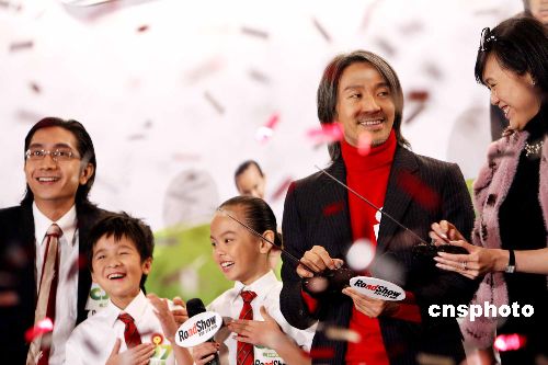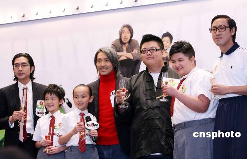 一月十四日,香港著名影星周星馳攜一眾演員出席記者會,為其導(dǎo)演的電影《長江7號》宣傳。蟄伏三年的喜劇巨星周星馳,執(zhí)導(dǎo)具有特別效果的電影《長江7號》,將在本月三十一日上演。中新社發(fā) 洪少葵 攝