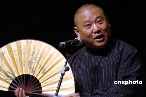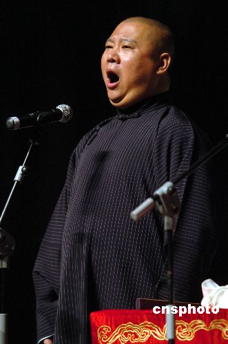 2008年1月13日晚,郭德綱率德云社在深圳體育館送上“德云社深圳新春相聲晚會(huì)”。郭德綱和于謙搭檔帶來(lái)多個(gè)新段子,其中《誰(shuí)動(dòng)了我的減肥茶》、《警察故事》、《文學(xué)家》等作品,大抖“連環(huán)包袱”,讓數(shù)千名觀眾大飽耳福。中新社發(fā) 吳峻 攝