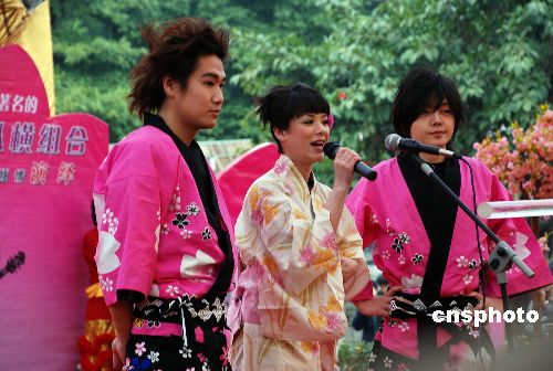 圖為日本著名偶像組合范姜明月@涉谷縱橫在櫻花節(jié)上表演。以“億萬櫻花舞羊城”為主題的首屆廣州櫻花文化節(jié)2月4日至3月23日在廣州雕塑公園舉行。這是目前國內(nèi)規(guī)模最大、持續(xù)時間最長、最具特色的櫻花文化節(jié)。屆時,將有12000多棵櫻花在雕塑公園相繼綻放。為烘托節(jié)日氣氛,這次的櫻花主要以紅色、粉紅色為主。中新社發(fā) 袁宏偉 攝