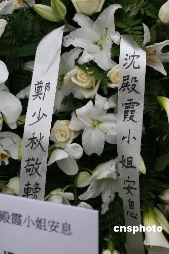 已故香港知名藝人沈殿霞于當(dāng)?shù)貢r(shí)間二十七日上午下葬在溫哥華地區(qū)本拿比科士蘭墓園,包括沈殿霞前夫鄭少秋、歌星張學(xué)友夫婦以及徐小鳳等都送了花圈,其中一個(gè)寫著“沈殿霞小姐安息,鄭少秋敬挽”字樣。中新社發(fā) 羅琦 攝