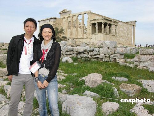 當地時間3月22日下午,搜狐公司董事局主席兼首席執(zhí)行官張朝陽、搜狐奧運官網特約記者章子怡與奧運官方網站圣火報道團一行前往帕納辛納克斯泛雅典體育場、衛(wèi)城等雅典遺址,沿著奧運圣火傳遞的足跡,率先為中國億萬網民傳遞當地備戰(zhàn)奧運圣火傳遞的盛況。圖為張朝陽(左)與章子怡在雅典衛(wèi)城采風。中新社發(fā) 沈晨 攝