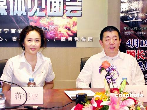2008年4月19日,顧長衛(wèi)、蔣雯麗夫婦到廣西南寧宣傳電影《立春》。有記者問蔣雯麗,拍廣告、電視劇和電影,自己最喜歡的是哪一個?蔣雯麗說最喜歡的還是電影,不是因為丈夫顧長衛(wèi)的關(guān)系,而是因為電影是她兒時的夢。中新社發(fā) 駱文剛 攝