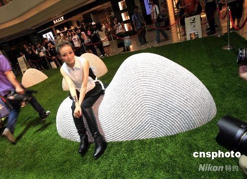 五月二十七日,臺灣藝術(shù)家洪東祿、黃致陽藝術(shù)展在香港時代廣場舉行,香港歌星容祖兒被邀出席并在藝術(shù)家黃致陽的“座千峰”雕塑前接受采訪。容祖兒介紹,明日就將與劉德華等數(shù)名藝人赴四川探訪地震災(zāi)民,給他們送去心靈的慰籍書藉。中新社發(fā) 王麗南 攝