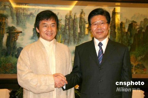 6月3日,國際巨星成龍抵達長沙,參加由湖南衛(wèi)視《快樂大本營》與中國兒童少年基金會合作制作的大型慈善晚會《童看奧運 共享光明》。當天下午,湖南省委書記張春賢會見成龍。中新社發(fā) 劉雙雙 攝