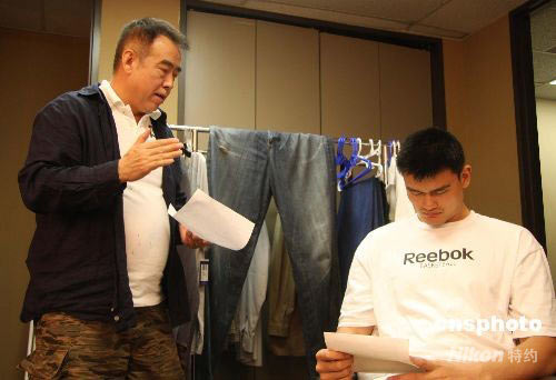 由陳凱歌執(zhí)導(dǎo),姚明擔(dān)綱主角的抗震救災(zāi)公益宣傳片日前在美國休斯敦開機,圖為導(dǎo)演陳凱歌為姚明“說戲”。據(jù)介紹,該公益宣傳片,是《2008分之1》公益短片行動的特別巨獻(xiàn),旨在宣揚中華民族不屈不撓,在災(zāi)難面前頑強奮斗的偉大精神,預(yù)計7月初在SMG旗下包括東方衛(wèi)視在內(nèi)的各大頻道以及中國內(nèi)地其它各省市級電視臺播出。中新社發(fā) 王鵑 攝