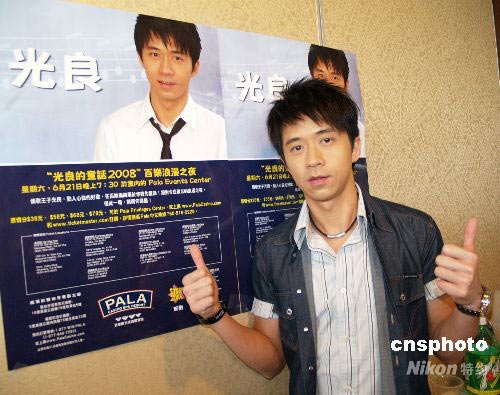 6月19日,馬來西亞“情歌王子”光良飛抵美國洛杉磯,舉辦《光良的童話2008百樂浪漫之夜》,讓洛杉磯廣大華人歌迷有機會與光良近距離接觸,受到熱烈歡迎。中新社發(fā) 盧威 攝