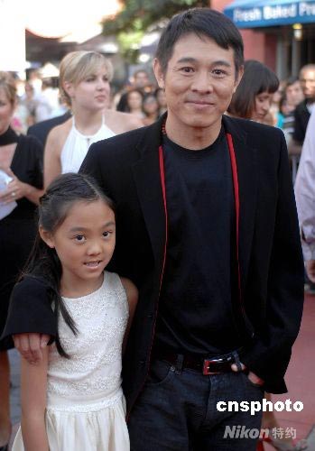 環(huán)球影業(yè)七月二十七日在好萊塢舉行《木乃伊3:龍帝之墓》首映式,片中“漢皇”的扮演者、著名功夫影星李連杰攜愛(ài)女Jane出席首映式。中新社發(fā) 張煒 攝