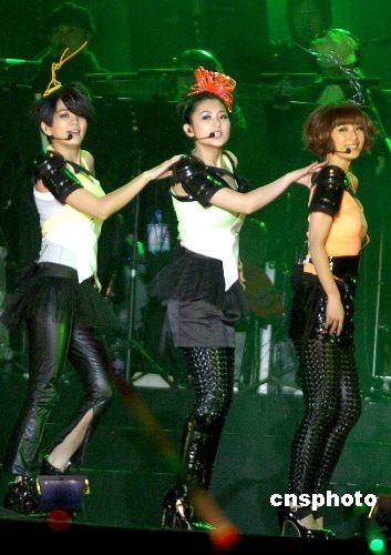 2008年10月31日晚,S.H.E、飛輪海全國演唱會濟南站在山東濟南舉行。當日正值S.H.E成員Selina生日,S.H.E和飛輪海全體成員以及全場歌迷共同為Selina慶祝。中新社發(fā) 張侃 攝