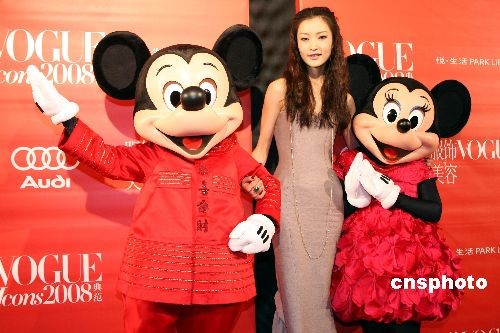 全球偶像米奇和米妮12月6日踏上了北京盛大舉行的“時(shí)尚偶像慶典活動(dòng)”紅毯,成為這個(gè)星光閃耀活動(dòng)中的兩位特殊來賓。米奇和米妮與中國的首席超級(jí)名模杜娟一同抵達(dá),共同出席此次活動(dòng)的還有其他500位時(shí)尚偶像,包括凱特·莫斯(Kate Moss)、杰西卡·史丹(Jessica Stam)、張曼玉(Maggie Cheung)、以及米拉·喬沃維奇(Milla Jovovich)。中新社發(fā) 楊可佳 攝