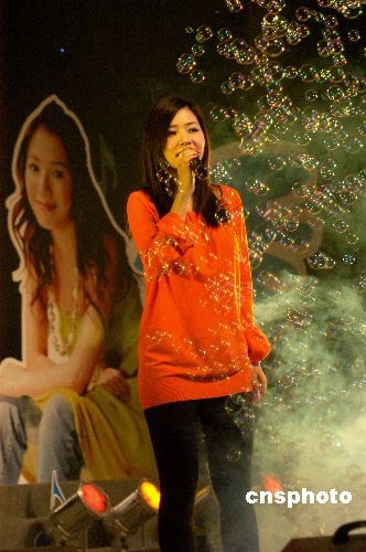 12月26日晚,臺(tái)灣歌手侯湘婷在江蘇連云港市黃海影劇院舉行歌友會(huì)。她靚麗的外表、甜美的笑容給歌迷帶來《曖昧》、《我是一只魚》、《冷戰(zhàn)》等歌曲,讓歌迷們大呼過癮,臺(tái)下的三千多歌迷們的情緒也隨之波動(dòng)起伏,場(chǎng)面異;鸨。中新社發(fā) 王春 攝