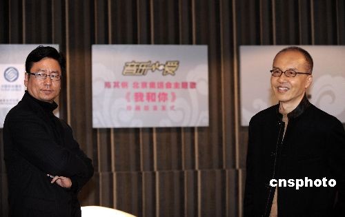 十二月二十七日,陳其鋼、曾慶淮、陳丹青等揮錘砸爛冰制鳥巢,取出《我和你》珍藏版專輯正式發(fā)布。陳其鋼是北京奧運會開幕式音樂總設(shè)計,北京奧運會開幕式主題曲《我和你》的作者。中新社發(fā) 廖攀 攝