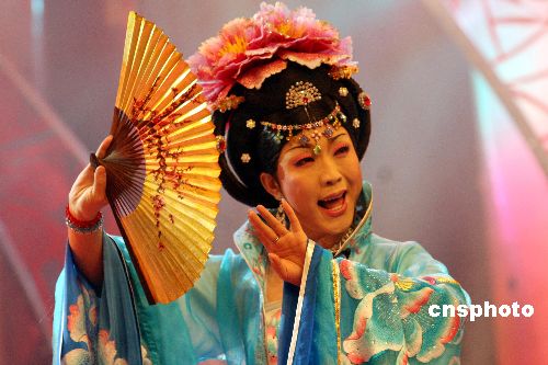 背景資料:舞臺上的李玉剛是一個28歲的東北農(nóng)村小伙子,用男扮女裝的表演和男唱女腔的歌聲,闖入央視《星光大道》,并獲得2006年度季軍。舞臺上的“絕色佳人”李玉剛,在生活中是一個聲音陽剛、長相帥氣的小伙子。李玉剛的老家在吉林省公主嶺市一個偏僻的農(nóng)村,和很多東北人一樣,李玉剛的母親也很喜歡唱二人轉(zhuǎn)。受母親的影響,他從小喜歡唱歌。1996年高中畢業(yè)后的李玉剛考取吉林省藝術(shù)學(xué)院,但由于家里供不起,李玉剛不得不放棄學(xué)業(yè),17歲開始出去闖蕩。2006年夏天,一次機會讓全國電視觀眾認(rèn)識了李玉剛。男扮女裝的李玉剛在星光大道上一出現(xiàn),觀眾驚訝不已,很多人都不相信他是個小伙子!栋酝鮿e姬》、《貴妃醉酒》是京劇藝術(shù)中的兩個傳統(tǒng)曲目,在表演這兩個節(jié)目的過程中,李玉剛借鑒了京劇藝術(shù)的手段,加入了很多表現(xiàn)方式。中新社發(fā) 牛書培 攝