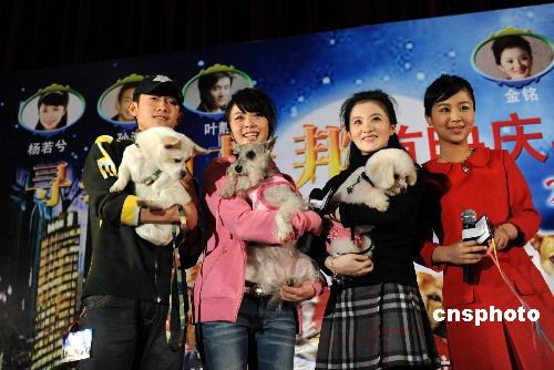 二月四日,影視藝人張一山、楊若兮、金銘、楊紫,分別攜帶雪拉瑞、比熊等名犬亮相《尋找狗托邦》首映式。當(dāng)日,電影《尋找狗托邦》在北京上映。該片講述一群浪跡天涯的小狗為救其中一只受傷狗,經(jīng)歷千難萬(wàn)險(xiǎn)帶它去“狗托邦”治病的故事。中新社發(fā) 廖攀 攝