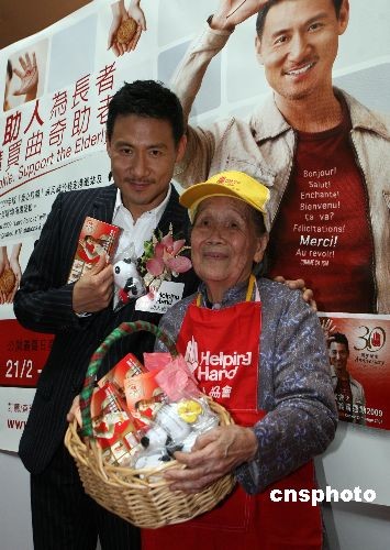 二月二十一日,“愛心曲奇大使”張學(xué)友在香港出席伸手助人協(xié)會(huì)舉行的義賣活動(dòng),為協(xié)會(huì)旗下的長(zhǎng)者院舍籌集善款。中新社發(fā) 武仲林 攝
