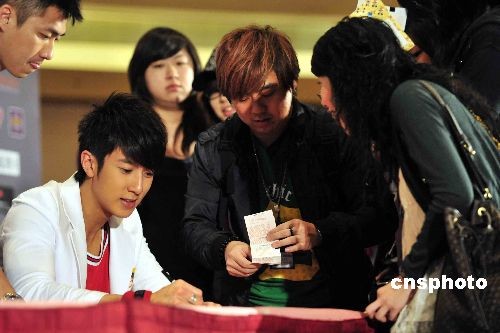 二月二十六日,臺灣組合“飛輪海”在香港一商場舉行簽名活動,為其即將舉行的演唱會造勢。中新社發(fā) 譚達(dá)明 攝