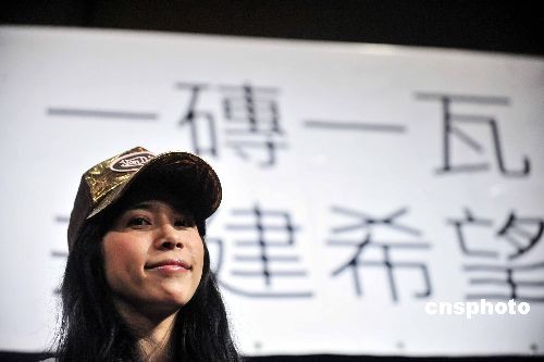 三月四日,香港歌手莫文蔚在仁人家園舉行的記者會上呼吁,賑災除了捐錢,年輕人還應該捐時間和力氣。國際非牟利組織仁人家園當天在港宣布,在全球招聘五百義工,幫助四川災區(qū)七百個受災家庭重建家園。中新社發(fā) 譚達明 攝